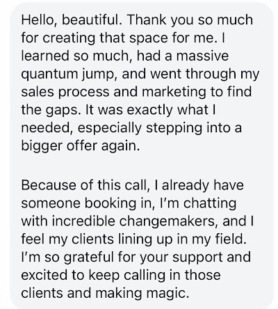 Alissa will personally coach you through the tone, energy, and flow that help buyers feel safe, seen, and ready to invest. You’ll sound like the confident, embodied leader your clients can’t say no to.